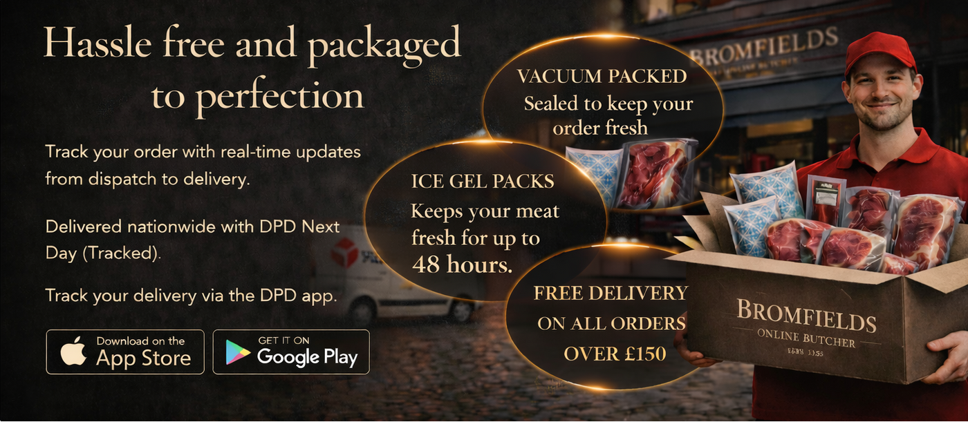 Upgrade your weekly shop with an online butcher. Enjoy fresher cuts, wider choice, and expertly packed delivery from Bromfields Butchers.